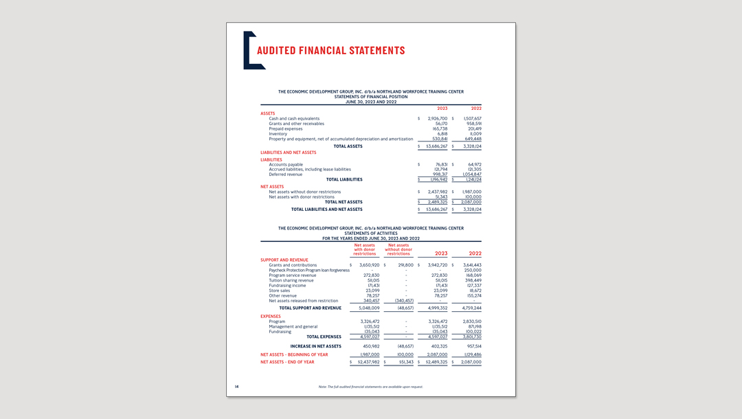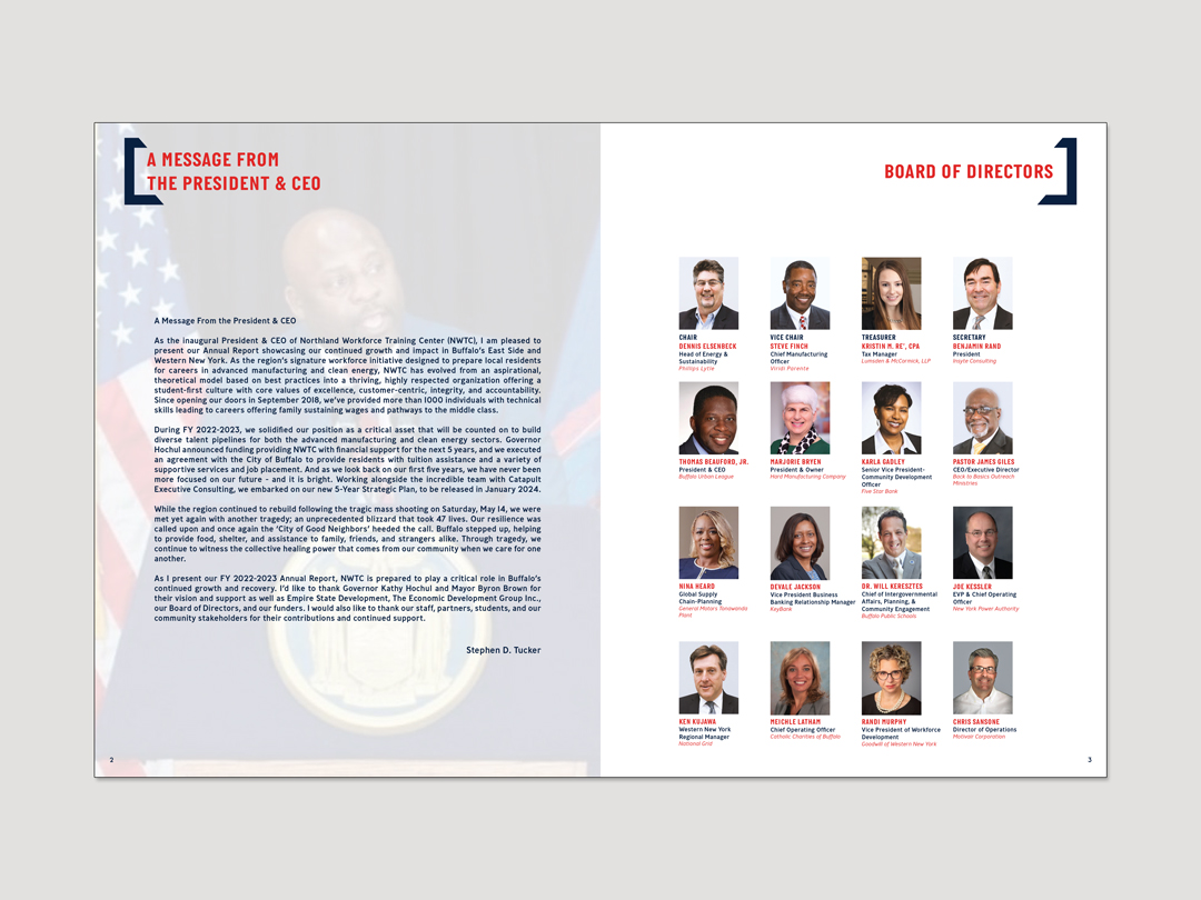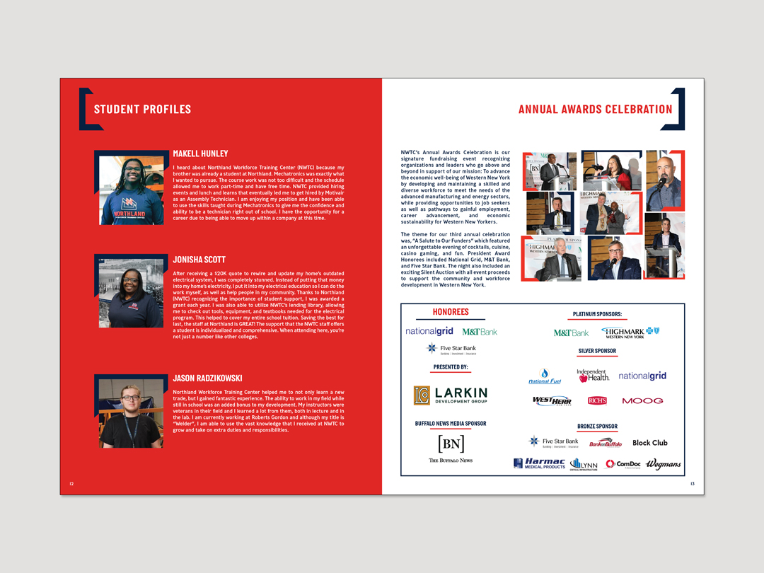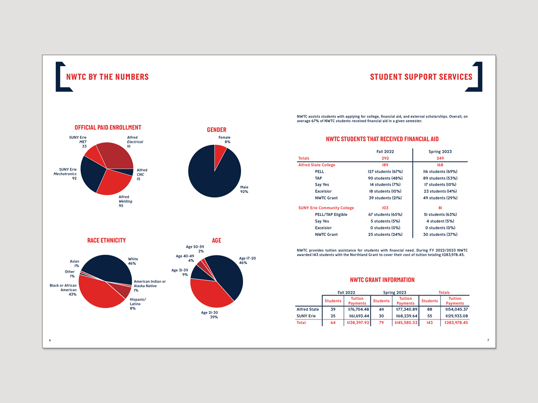 Designed a series of annual reports for Northland Workforce Training Center spanning fiscal years 2017–2018 through 2022–2023. Over multiple years, the report evolved from a simple 4-page document into a 16-page publication as content expanded. The project focused on translating increasingly complex information into a clear, structured format that stakeholders could easily navigate and understand.